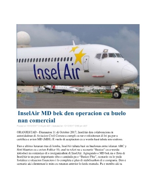 ORANJESTAD - Diaranzon 11 di October 2017, InselAir den colaboracion cu