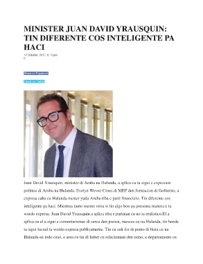 Juan David Yrausquin, minister di Aruba na Hulanda, a splica cu ta sigui e expresion