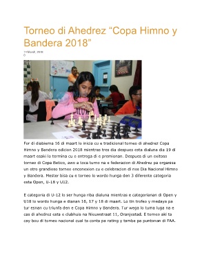 For di diabierna 16 di maart lo inicia cu e tradicional torneo di ahedrez Copa
