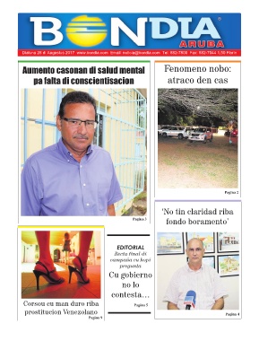 Dialuna 28 di Augustus 2017 www.bondia.com Email: noticia@bondia.com Tel: 582-7800 Fax: 582-7044 1,50 Florin
