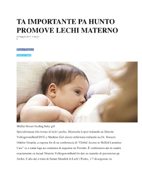 Oduber Hospita, a regresa for di un conferencia di “Global Access to Skilled Lactation