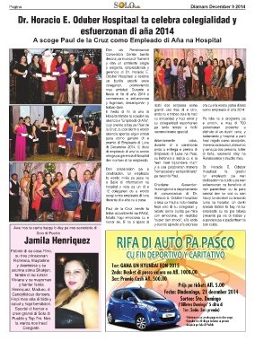 di December 2014. E titulo “remarcabel y extraordinario” tuma na hospital. Un danki