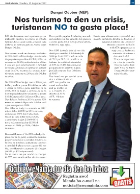 midi exito turistico ta a traves di entrada un beneficio real di e aumento den placa cu maneho ineficiente di ATA, su directora of