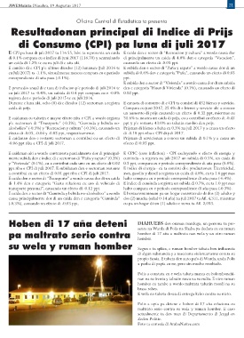 a contribui cu un efecto di 0.01 ppt riba e CPI di juli 2017. awa, gasolin y diesel a registra un caida di 4.8%, cu ta 1.6 ppt mas
