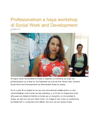 Social Work and Developments na Universidad Aruba ta amplia.