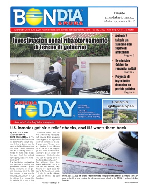 Diahuebs 25 di Juni 2020 www.bondia.com Email: noticia@bondia.com Tel: 582-7800 Fax: 582-7044 1,75 Florin