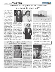a lo mejor del cine y la tele- ‘El club’ obtuvo hoy la nomi- en una categoría que tam- completa de nominados a los