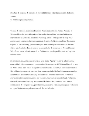 Minister Hulandes y su delegacion a bin Aruba riba e ultimo bishita oficial como