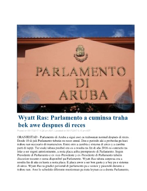 ORANJESTAD - Parlamento di Aruba a sigui awe cu trabounan normal despues di reces.