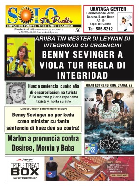 Diasabra 9 Juli 2016 -Edicion-10 Vol.2000 Sta.Cruz #110 1.50 URATACA CENTER