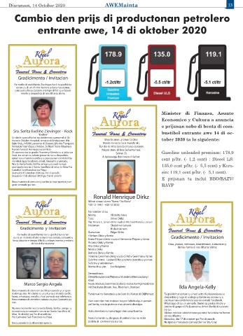 esnan cu a manda kaarchi y a expresa nan condolencia cent p/ltr. (- 1,2 cent) : Diesel LS: