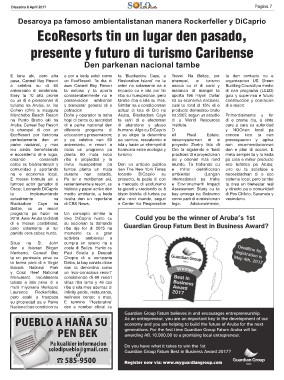 na Punto Brabo aki na invita huespednan pa Den un articulo publica di e World Resources eco turistico pa Aruba;