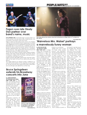 LOS ANGELES (AP) — Donald Fagen of Steely Dan is su- This image released by Amazon shows Rachel Brosnahan as Midge Maisel in "The Marvelous