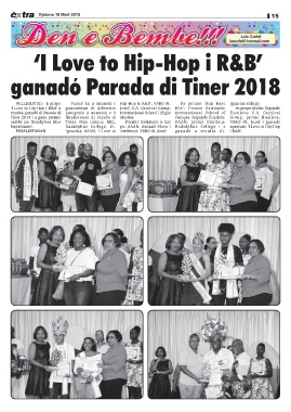 Tiner 2018 i a gana premio finalistanan di Parada di Martier. Curaçao. Segundo finalista: Group, promé finalista: