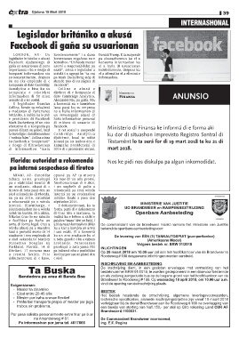 informashon di 50 mion  dato Cambridge Analytica,      Finansa                    ANUNSIO