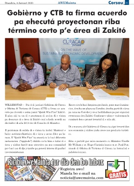 y Oficina di Turismo di Corsou (CTB) a firma un acu- cion, drecha un playa na Coredor, drecha parti di e área