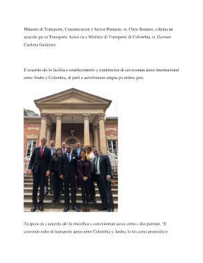 acuerdo pa cu Transporte Aereo cu e Minister di Transporte di Colombia, sr. German
