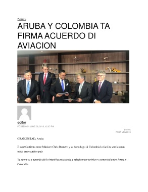 Ta spera cu e acuerdo aki lo intesifica mas ainda e relacionnan turistico y comercial entre Aruba y