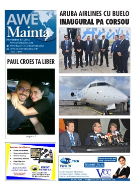 ARUBA AIRLINES CU BUELO INAUGURAL PA CORSOU November 15, 2017 www.awemainta.com www.facebook.com/awemainta noticia@awemainta.com 583-1400 PAUL CROES TA LIBER pagina 11 pagina 2