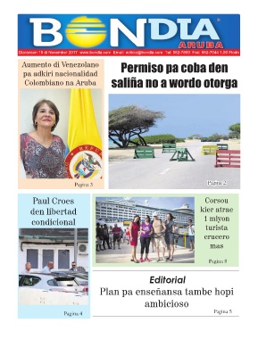 Diaranson 15 di November 2017 www.bondia.com Email: noticia@bondia.com Tel: 582-7800 Fax: 582-7044 1,50 Florin