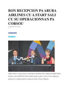 Aruba Airlines a yega Corsou y e aerolinea ta satisfecho. Nos a papia cu Esteban Valles,