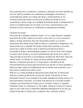 compara cu promocionnan di Aruba como un producto. Pues cu e campaña