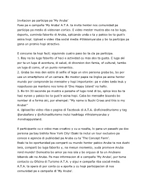 contacto cu Oficina di Turismo A.T.A. y sigui e campaña riba social media.