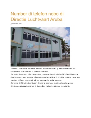 Directie Luchtvaart Aruba ta informa pueblo di Aruba y particularmente su