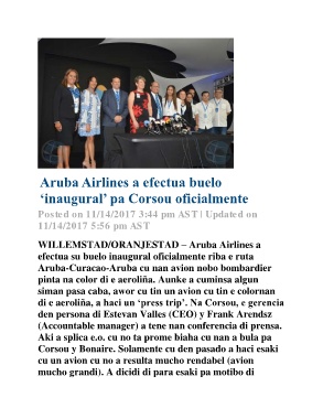 di e aeroliña, a haci un ‘press trip’. Na Corsou, e gerencia