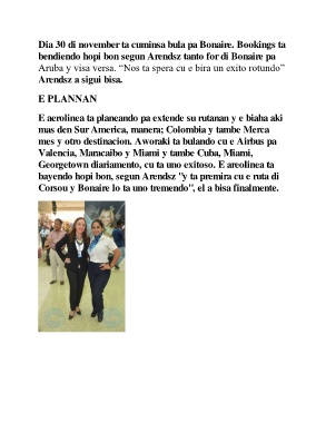 mes y otro destinacion. Aworaki ta bulando cu e Airbus pa
