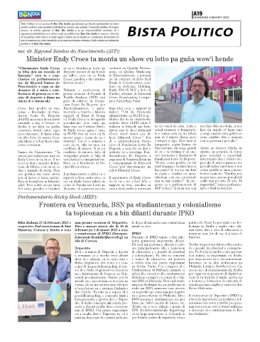 convence hende cune, sigui Si Endy Croes gana e caso, rijven van de heer Edmond actual minister ta bringando, kier tin miedo of lanta para
