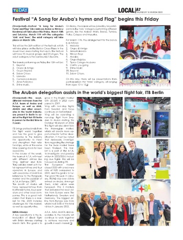 (Oranjestad)—Festival “A Song for Aruba’s On Friday, the bands will be joined by 16 partici-
