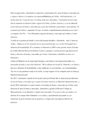 di area di benta y mercadeo pa e region di Latino America cu Marriott International Inc. y