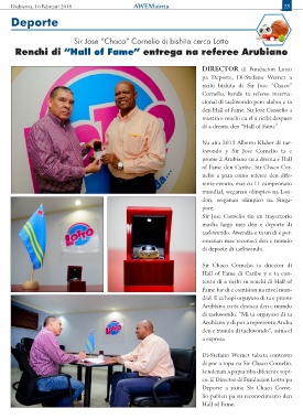 Renchi di “Hall of Fame” entrega na referee Arubiano