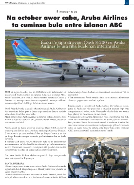 intencion di Aruba Airlines di cuminsa bula entre e islanan ABC. disponibel.