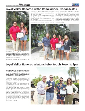 Loyal Visitor Honored at Manchebo Beach Resort & Spa