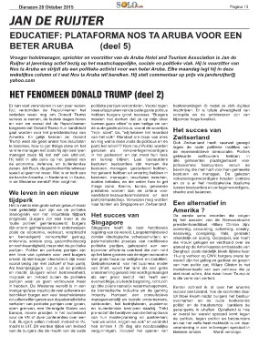 wekelijkse column ui t wat Nos ta Aruba wil bereiken. Hij stelt commentaar op prijs via janderuijter@