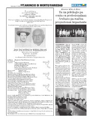 Oportunidad pa condolencia ta Diaranson: 15 April 2015 di 7’or pa 9’or di anochi na Au-