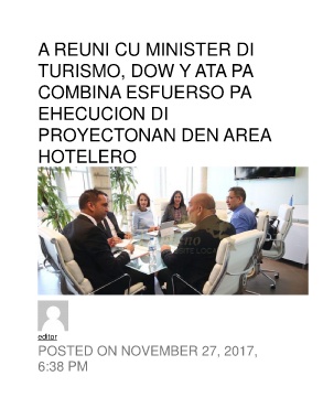 A REUNI CU MINISTER DI TURISMO, DOW Y ATA PA COMBINA ESFUERSO PA EHECUCION DI PROYECTONAN DEN AREA HOTELERO editor POSTED ON NOVEMBER 27, 2017, 6:38 PM