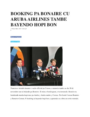 Francisco Arends durante e vuelo official pa Corsou, a anuncia tambe cu dia 30 di