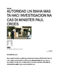 Den oranan di mainta tempran un biaha mas autoridad nan drenta den cas di Minister Paul Croes. Na