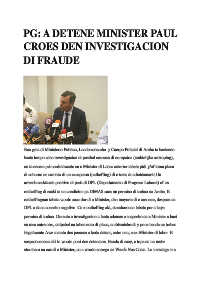 stranhero na cas di e Minister, cu a wordo entrega na Warda Nos Costa. Lo investiga si e