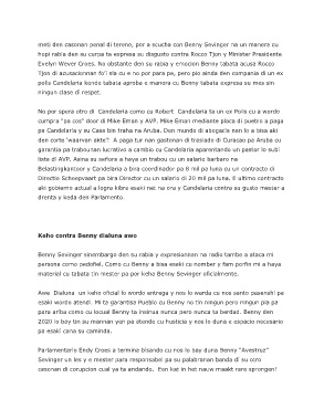 Evelyn Wever Croes. No obstante den su rabia y emocion Benny tabata acusa Rocco