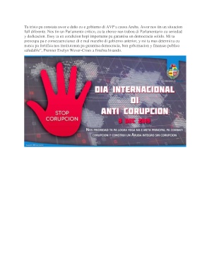 nunca pa fortifica nos institutonan pa garantisa democracia, bon gobernacion y finansas publico