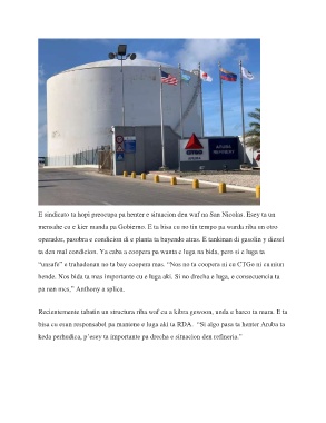 keda perhudica, p’esey ta importante pa drecha e situacion den refineria.”