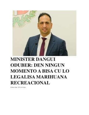 MINISTER DANGUI ODUBER: DEN NINGUN MOMENTO A BISA CU LO LEGALISA MARIHUANA RECREACIONAL 9 December, 2019, 6:25 pm 213