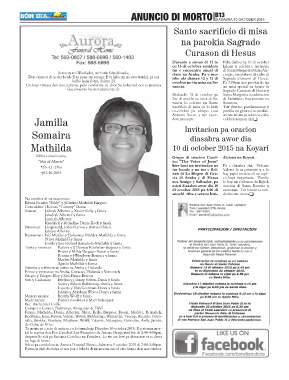 Adres pa condolencia: Aurora Funeral Home, diabierna 9 october 2015 di 7:00-9:00pm.