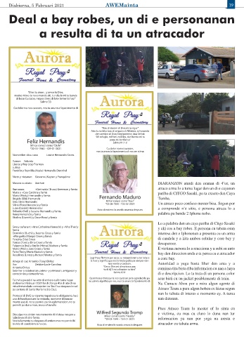 bishita di condolencia na cas. Acto di entiero lo wordo anuncia despues atracador cu tabata arma.