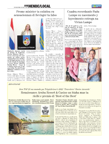 sino ta conoci pa ta lider den of- entemente TripAdvisor a anun- brando asina Renaissance Aruba a sa di bolbe destaca y diferencia su
