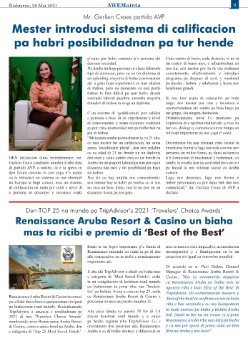 e categoria di ‘Most Saved Hotels’, esaki Casino; “Nos ta sumamente orguyoso